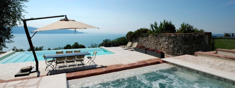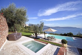 Ein großer Pool mit Salzsterilisierung und ein getrennter Whirlpool befinden sich in dem großzügig angelegten, privaten Garten inmitten Lavendelsträuchern, aromatischen Pflanzen und Rosenbeeten. Von jedem Punkt des Gutes aus hat man einen wunderbaren Blick auf den Gardasee, der auch einen unaufmerksamen Gast bezaubert.